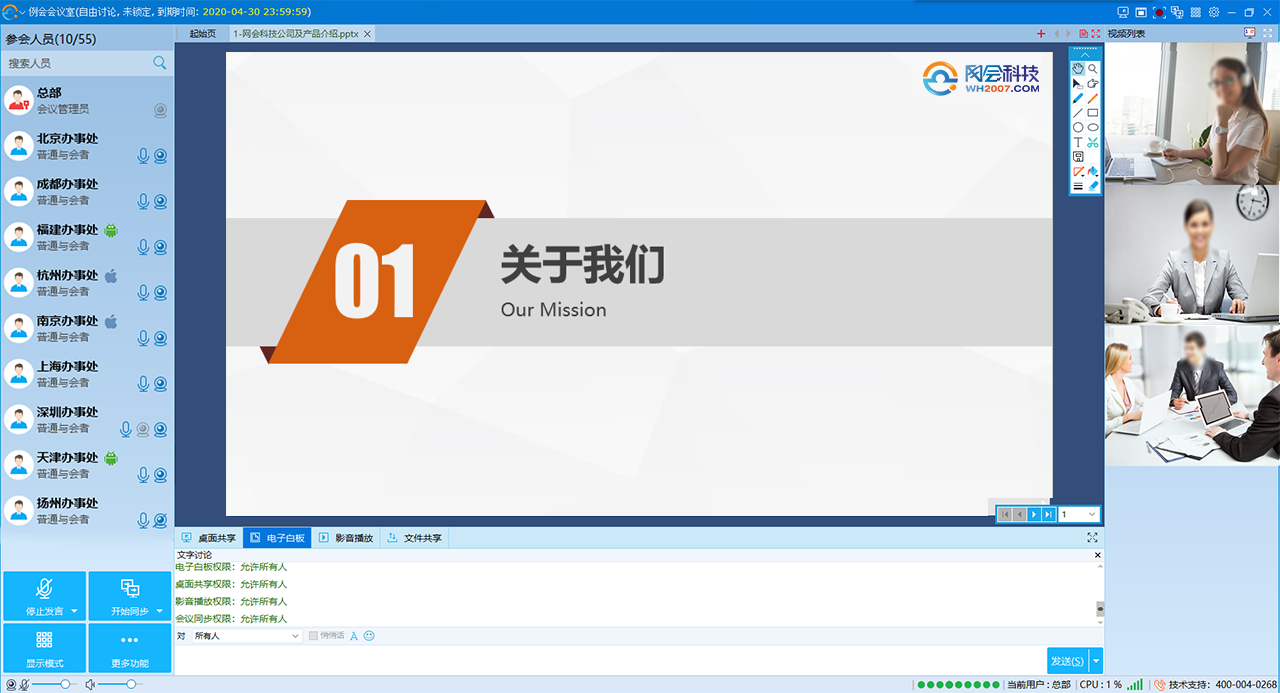 網(wǎng)會科技,使用智能網(wǎng)絡(luò)為客戶提供安全可靠、流暢清晰的全面視頻會議服務(wù),給客戶更好的體驗,網(wǎng)會使團(tuán)隊更容易協(xié)作、更容易溝通,歡迎咨詢:400-004-0268。